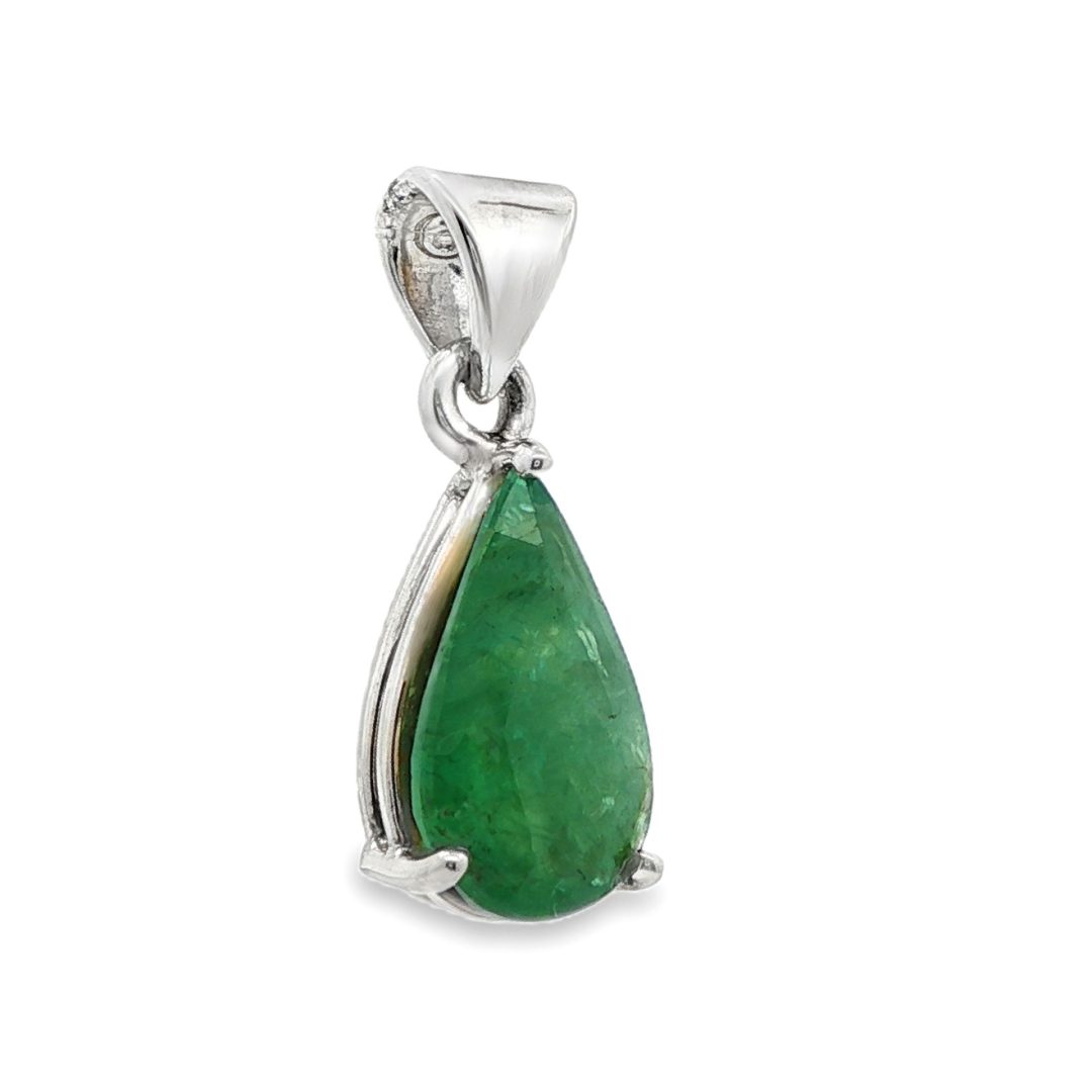 Emerald Pear Drop Claw Set Pendant